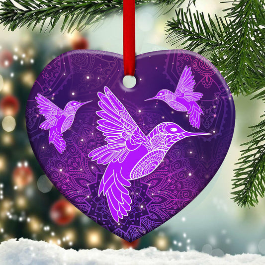 Hummingbird Purple Mandala Style Hummingbird - Heart Aluminium Ornament (Printed On Both Sides) 1122