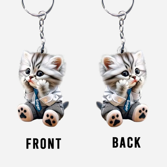 Cute Cat - Personalized Cat Custom Shaped Keychain