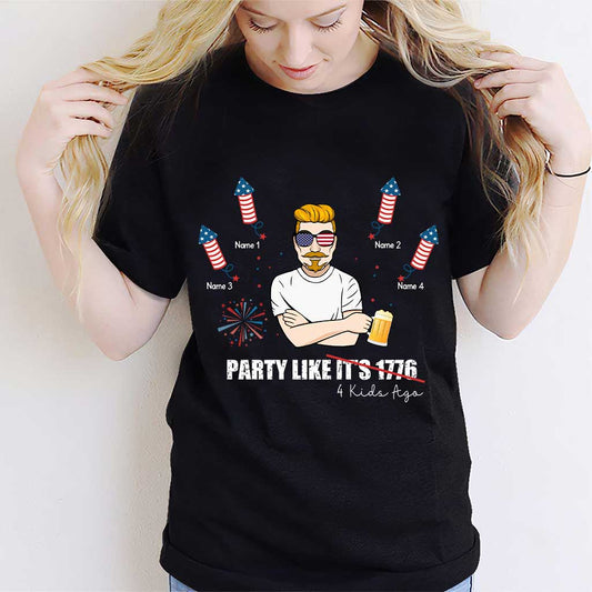 Party Like Four Kids Ago - Personalized Independence Day Father T-shirt and Hoodie