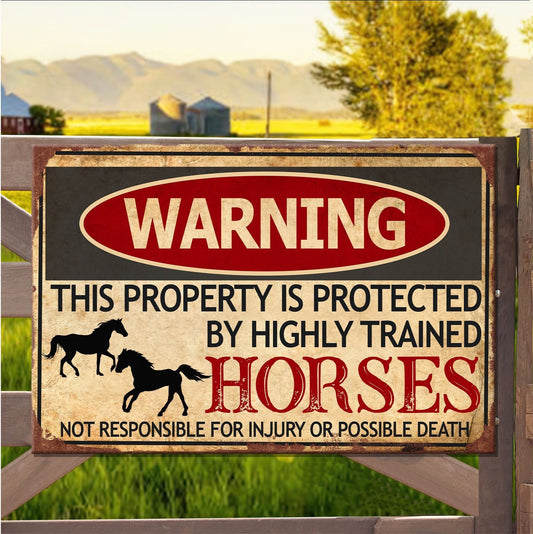 Protected by Horses Horse Rectangle Metal Sign 0523