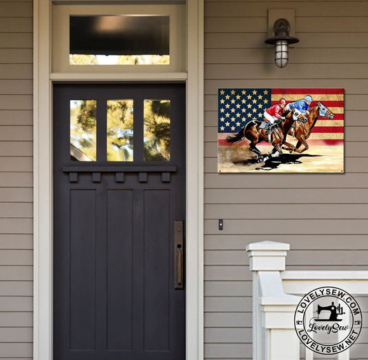 Horse Racing American Flag Horse Rectangle Metal Sign 0523
