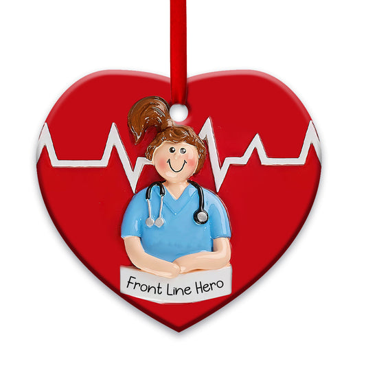 Nurse Front Line Hero Nurse - Heart Aluminium Ornament (Printed On Both Sides) 1122