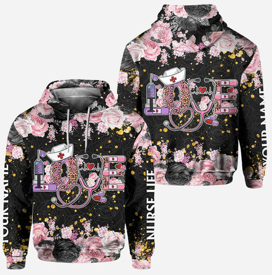 Love Nursing Black Pink - Personalized Nurse Hoodie And Leggings
