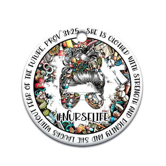 Nurse Life Clothed With Strength And Dignity Nurse - Round Aluminium Ornament (Printed On Both Sides) 1122