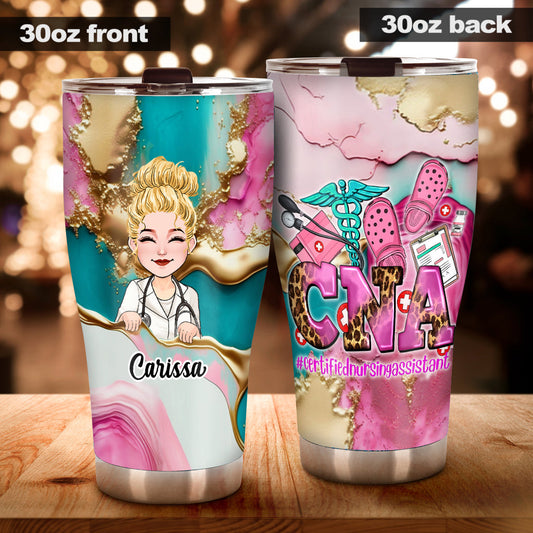 Nurse Life Pink Leopard Turquoise Blue - Personalized Nurse Tumbler