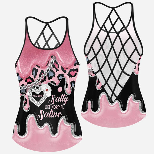 Salty Like Normal Saline - Personalized Nurse Cross Tank Top and Women Shorts