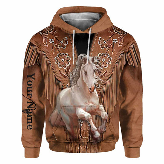 Love Horses - Personalized All Over T-shirt and Hoodie With Leather Pattern Print