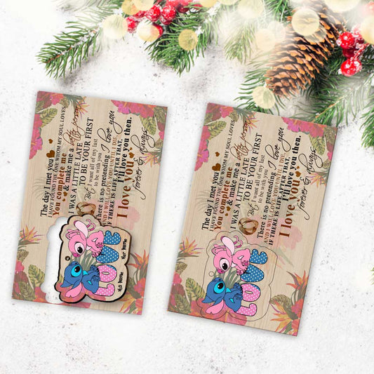 To My Love Ohana Couple - Personalized Christmas Ohana Wooden Card Pop Out Ornament