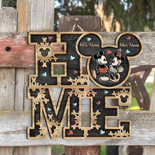Home Sweet Home - Personalized Couple Mouse Wood Sign