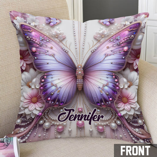 Purple Butterflies - Personalized Butterfly Throw Pillow