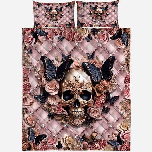 Pink Skull & Black Butterflies - Personalized Skull Quilt Set