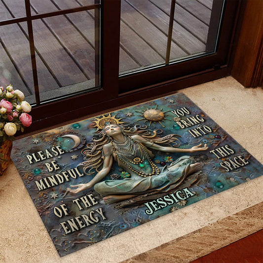 Please Mindful Of The Energy - Personalized Yoga Doormat
