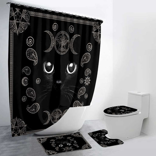 Witchy Black Cat - Witch Bathroom Curtain & Mats Set