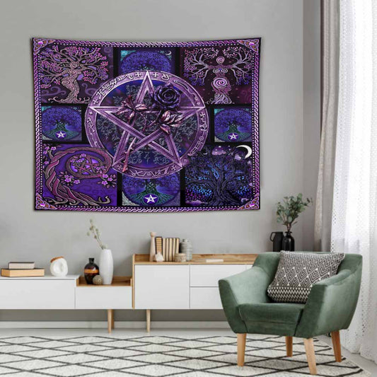 Magical Witch Purple Pentagram - Witch Wall Tapestry