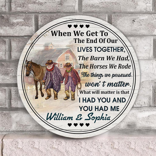 When We Get To - Personalized Couple Horse Round Wood Sign