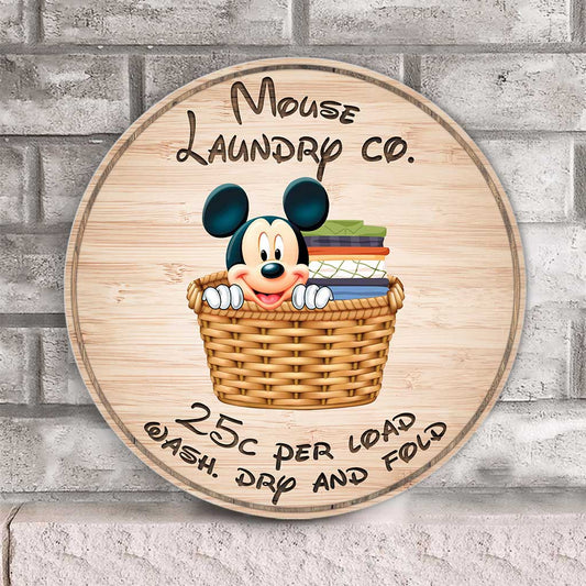 Laundry Co Mouse - Round Wood Sign