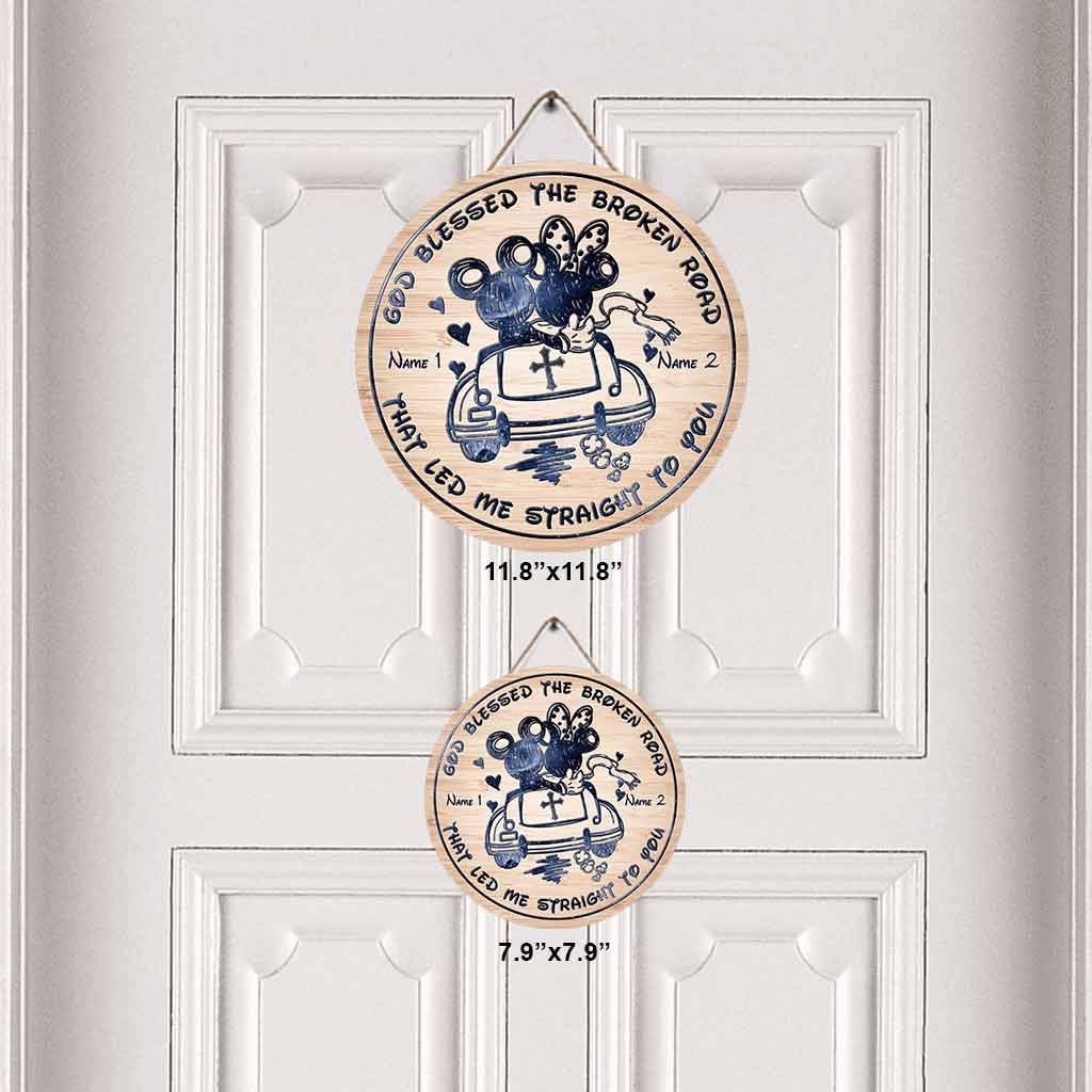 God Blessed The Broken Road That - Personalized Mouse Round Wood Sign