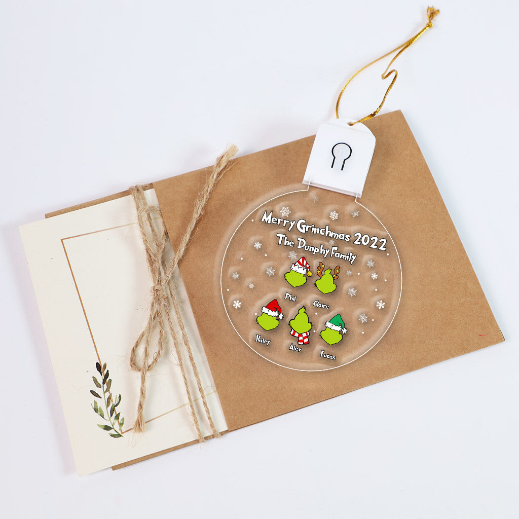 Merry Grinchmas 2022 - Personalized Christmas Family Round Led Acrylic Ornament