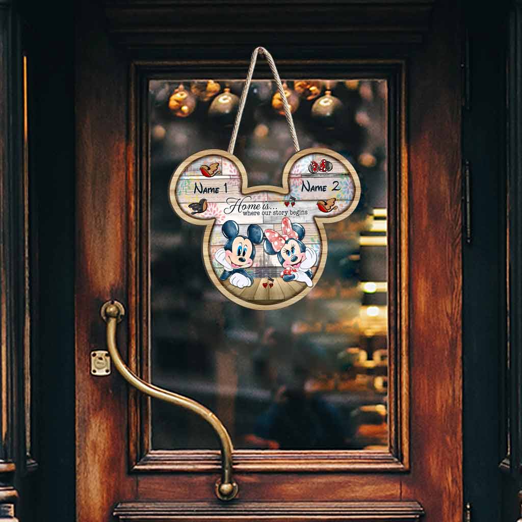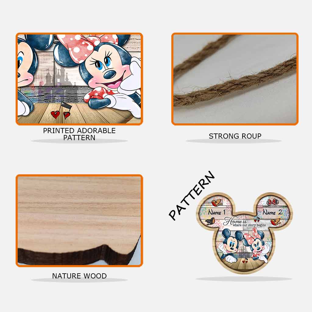 Home Is Where Our Story Begins - Personalized Couple Mouse Wood Sign