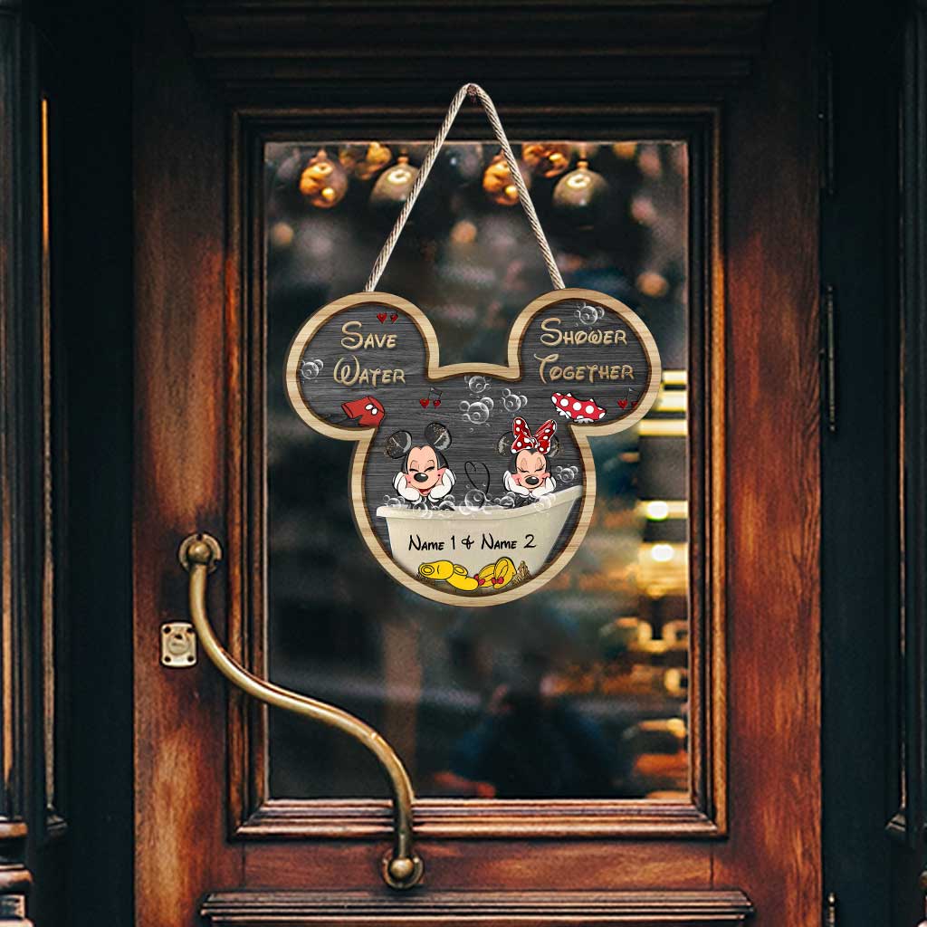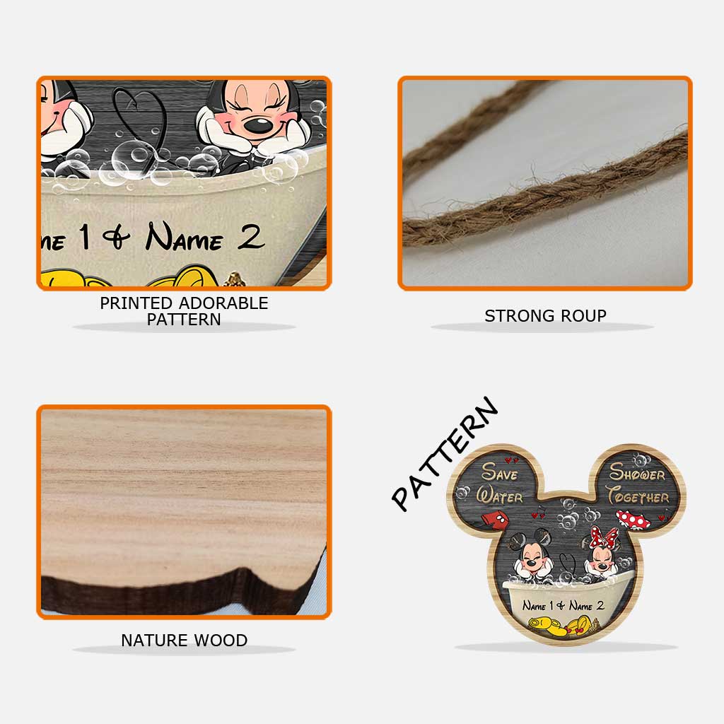 Save Water Shower Together - Personalized Couple Mouse Wood Sign