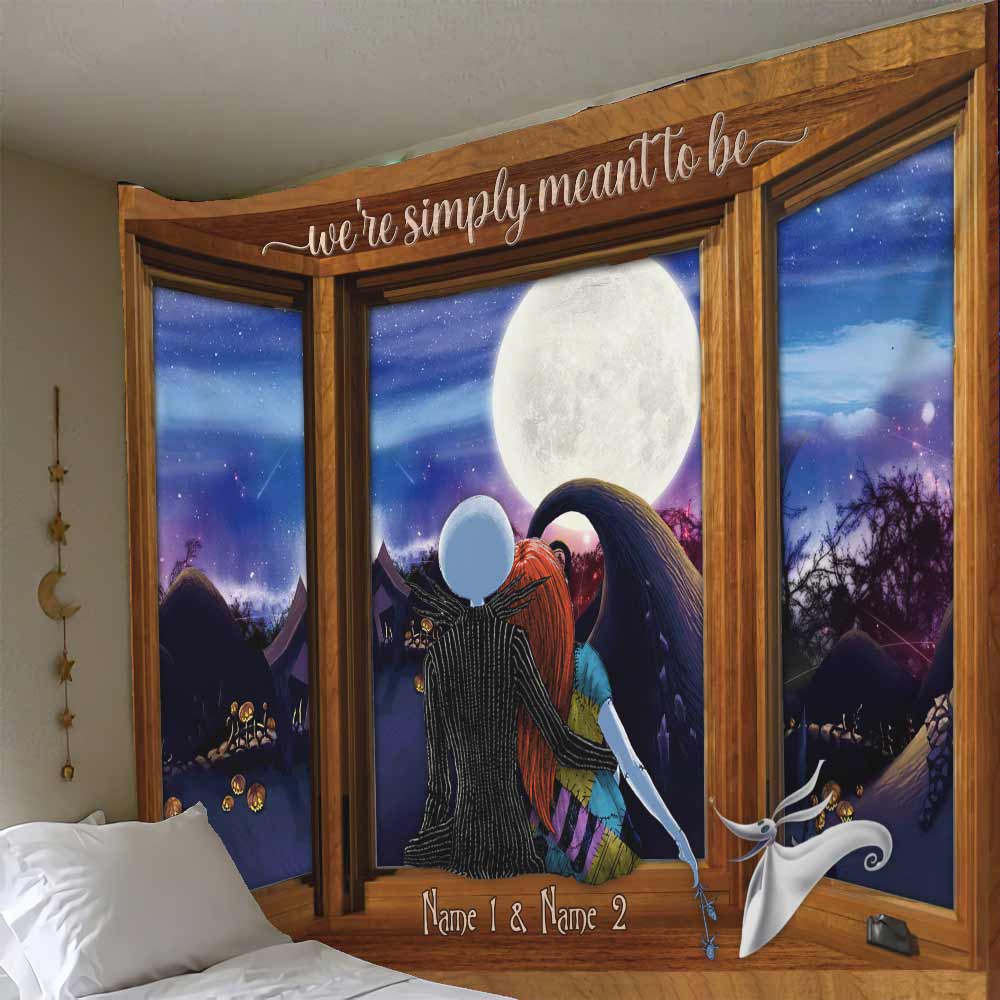 We're Simply Meant To Be - Personalized Couple Nightmare Wall Tapestry