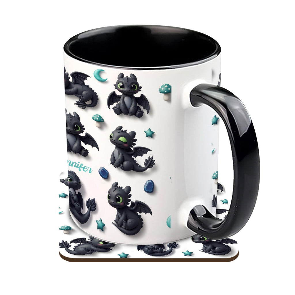 • High quality ceramic mug with two-tone rim, interior, & handle
