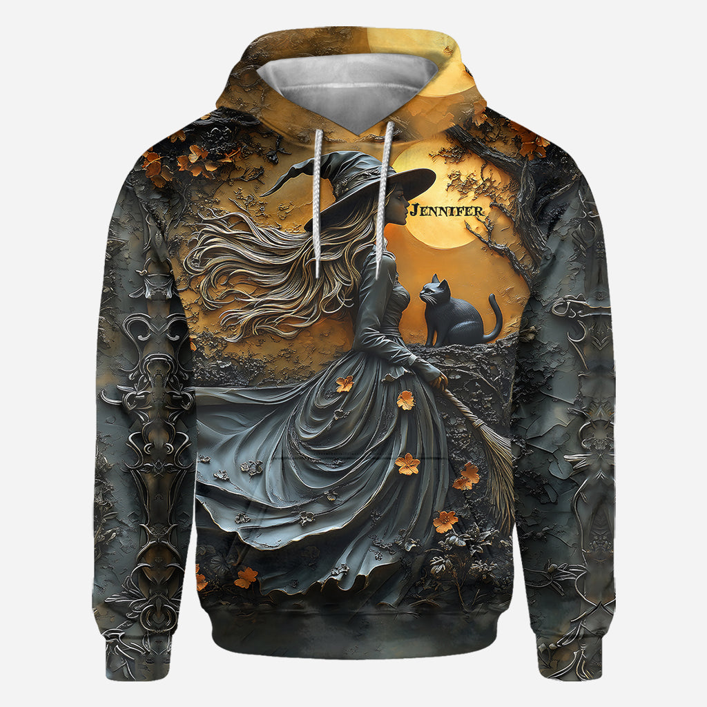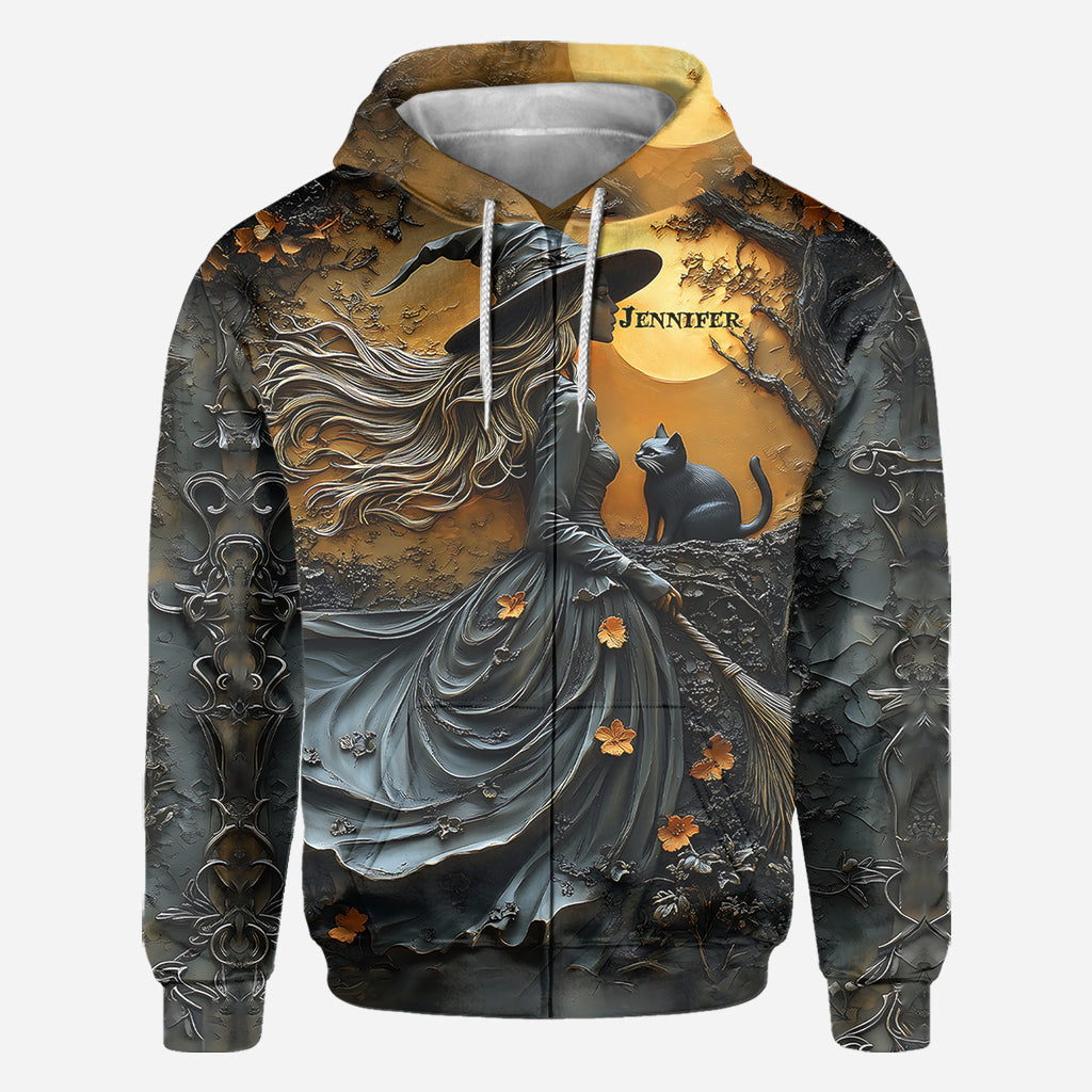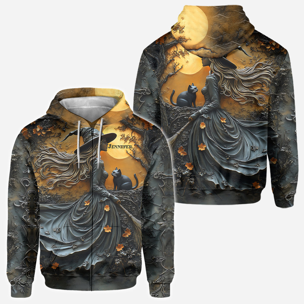 Beautiful Witch & Her Black Cat - Personalized Witch All Over Shirt