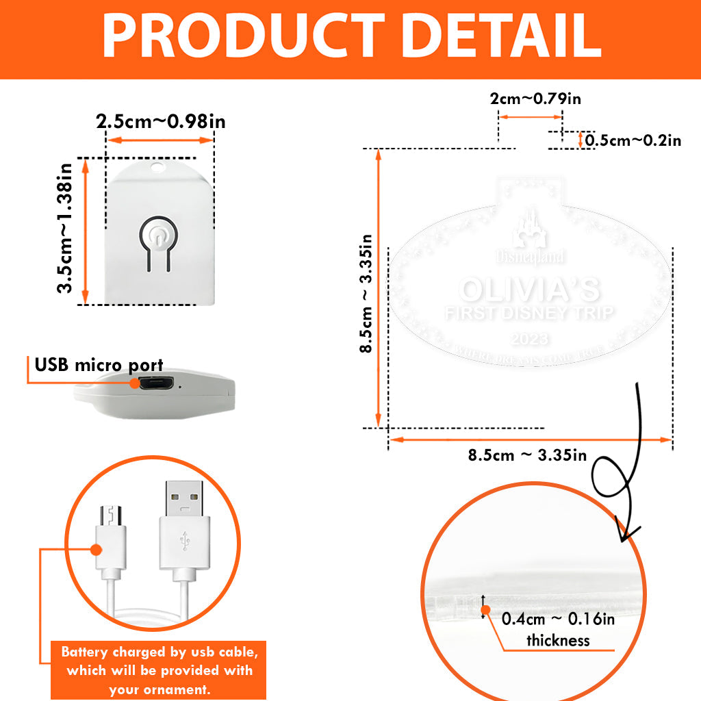Cast Member Name Tag Ornament - Personalized Mouse Led Acrylic Ornament
