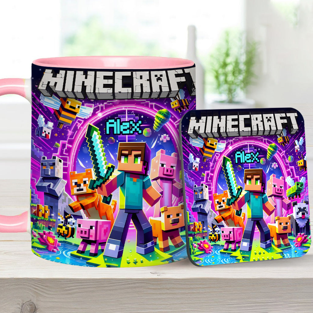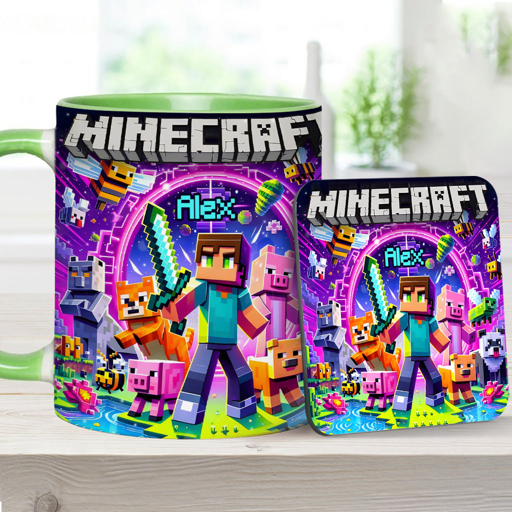 - High quality ceramic mug with two-tone rim, interior, & handle
