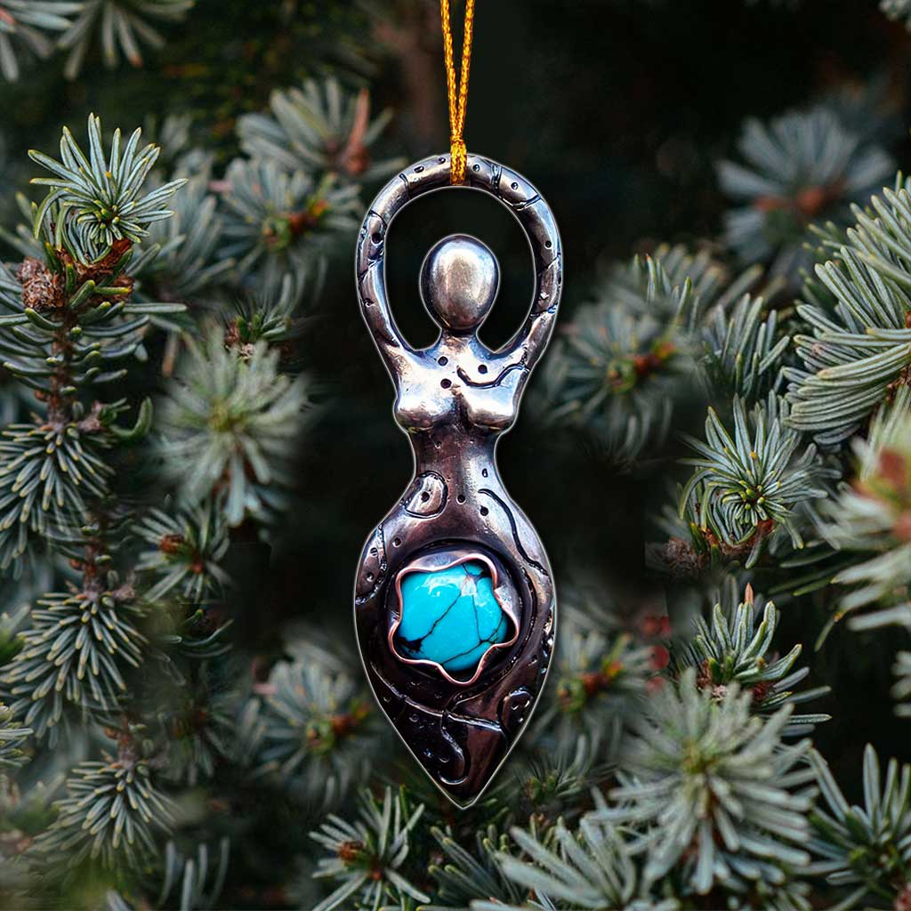 Earth Goddess Turquoise - Christmas Witch Ornament (Printed On Both Sides)