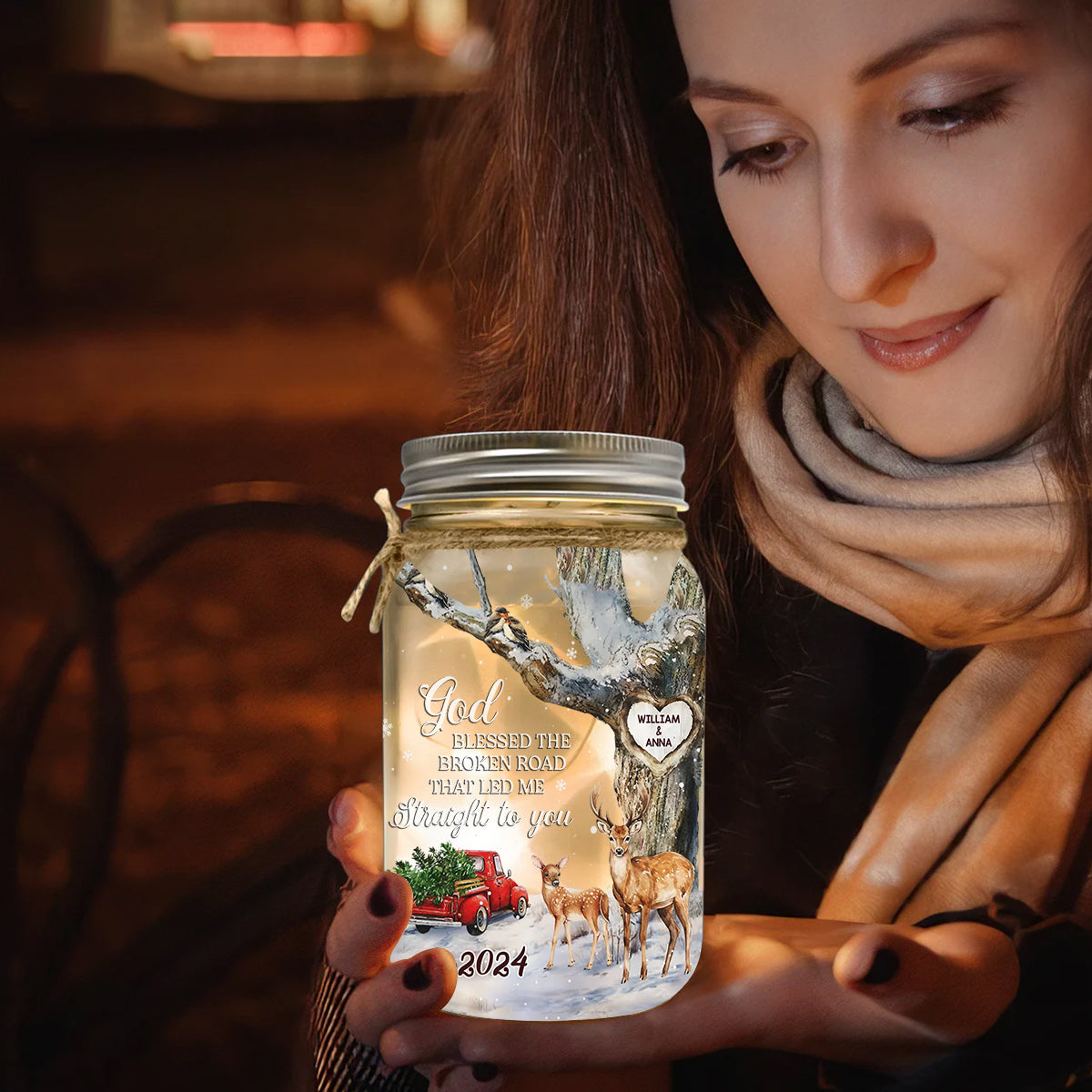 God Blessed The Broken Road - Personalized Couple Mason Jar Light