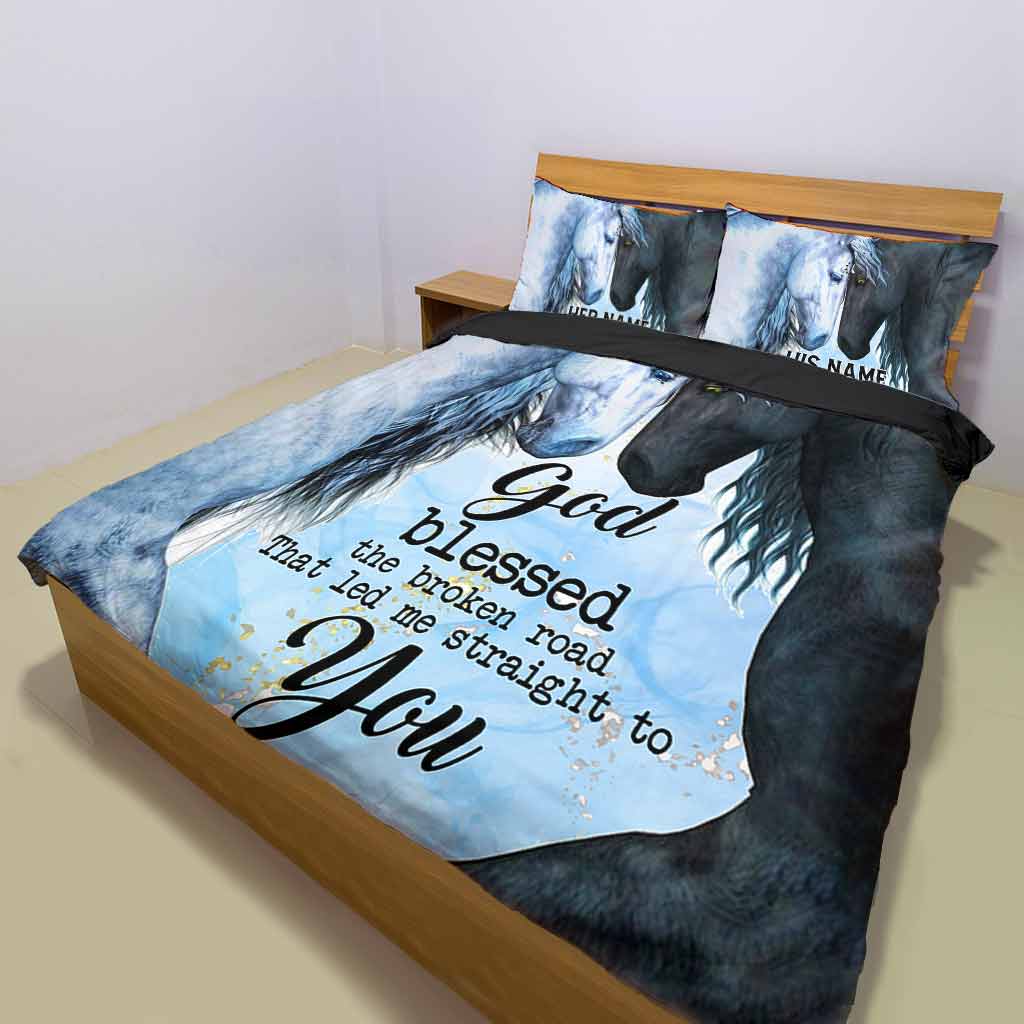 God Blessed The Broken Road - Personalized Horse Bedding Set