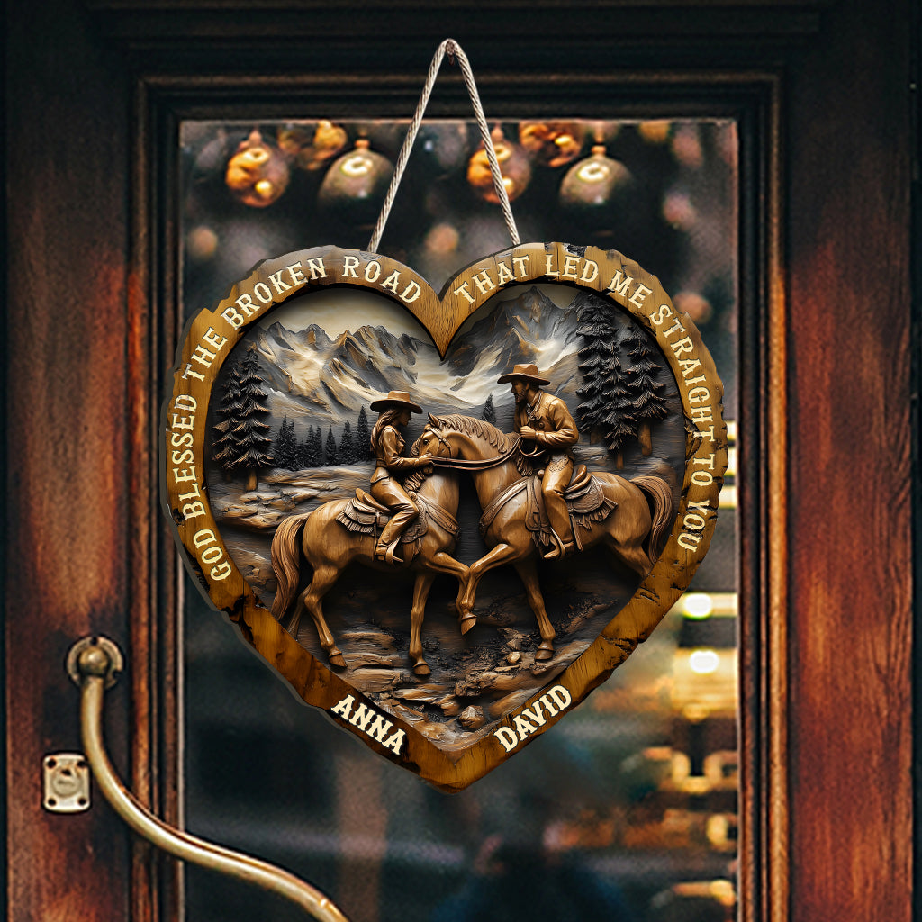 God Blessed The Broken Road That Led Me Straight To You - Personalized Country Girl Custom Shaped Wood Sign
