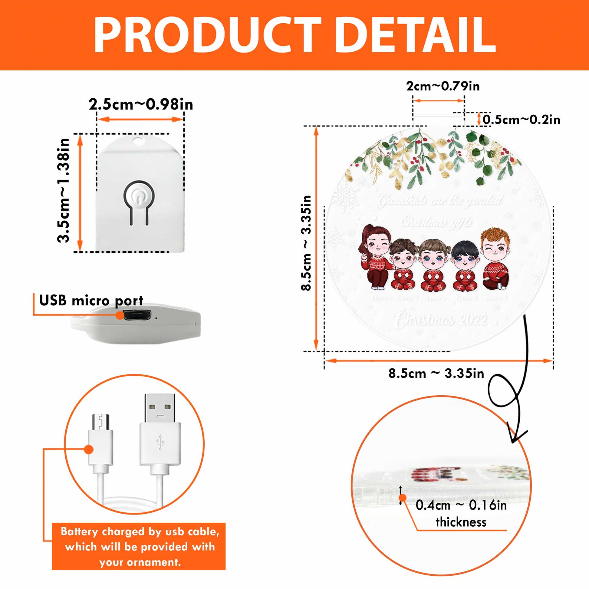 Grandkids Are The Greatest Christmas Gift - Personalized Grandma Round Led Acrylic Ornament