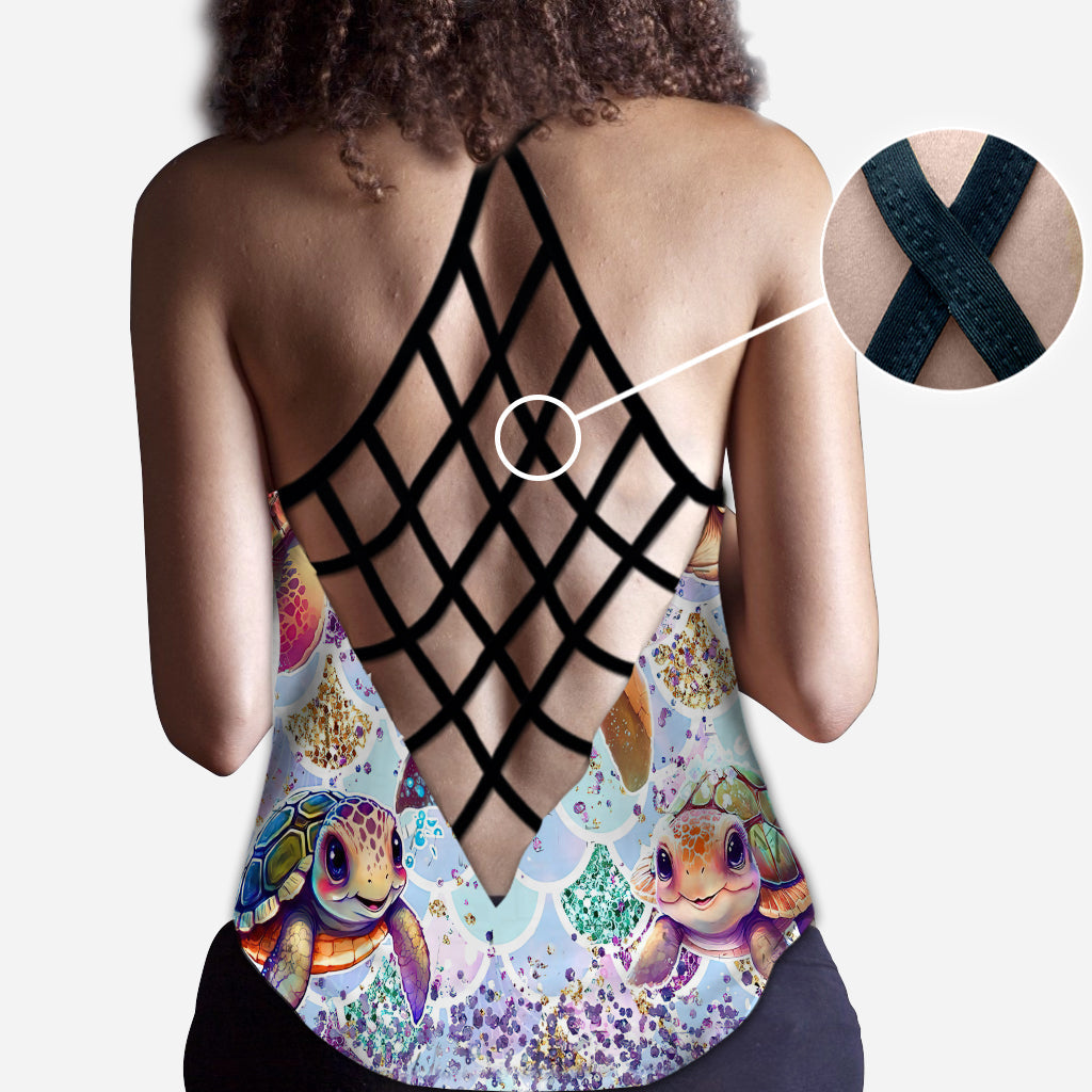Salty Little Beach - Personalized Turtle Cross Tank Top