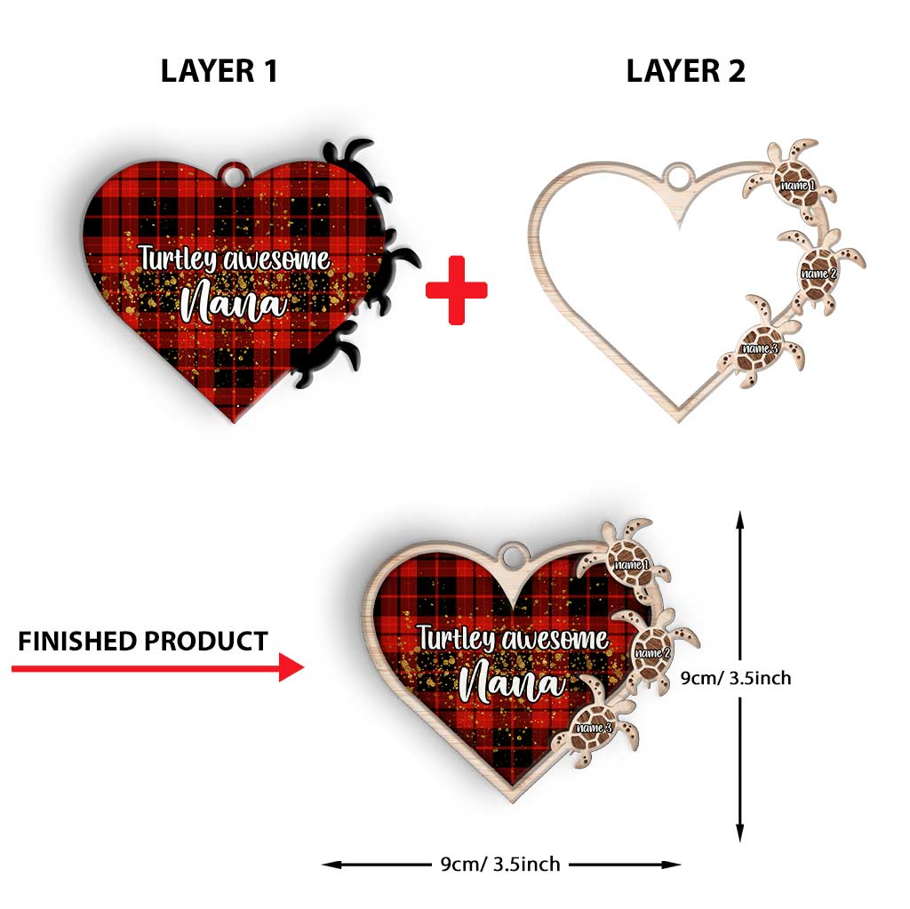 Turtley Awesome Grandma - Personalized Christmas Turtle Layered Wood Ornament