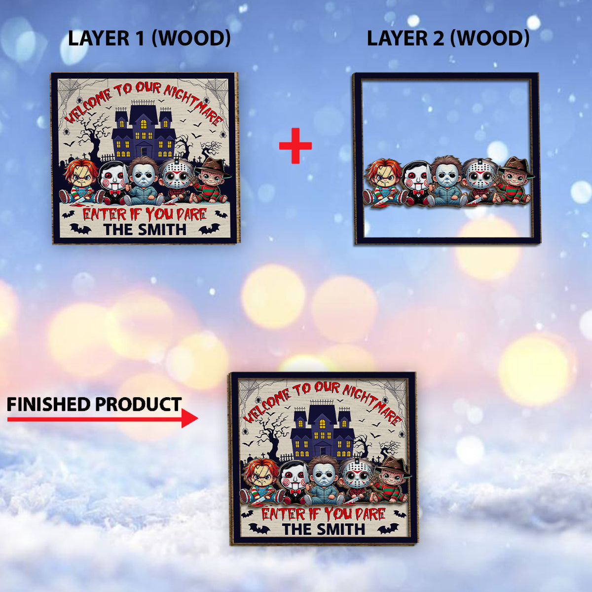 Welcome To Our Nightmare Enter If You Dare - Personalized 2 Layered Wood Sign / Wood Plaque